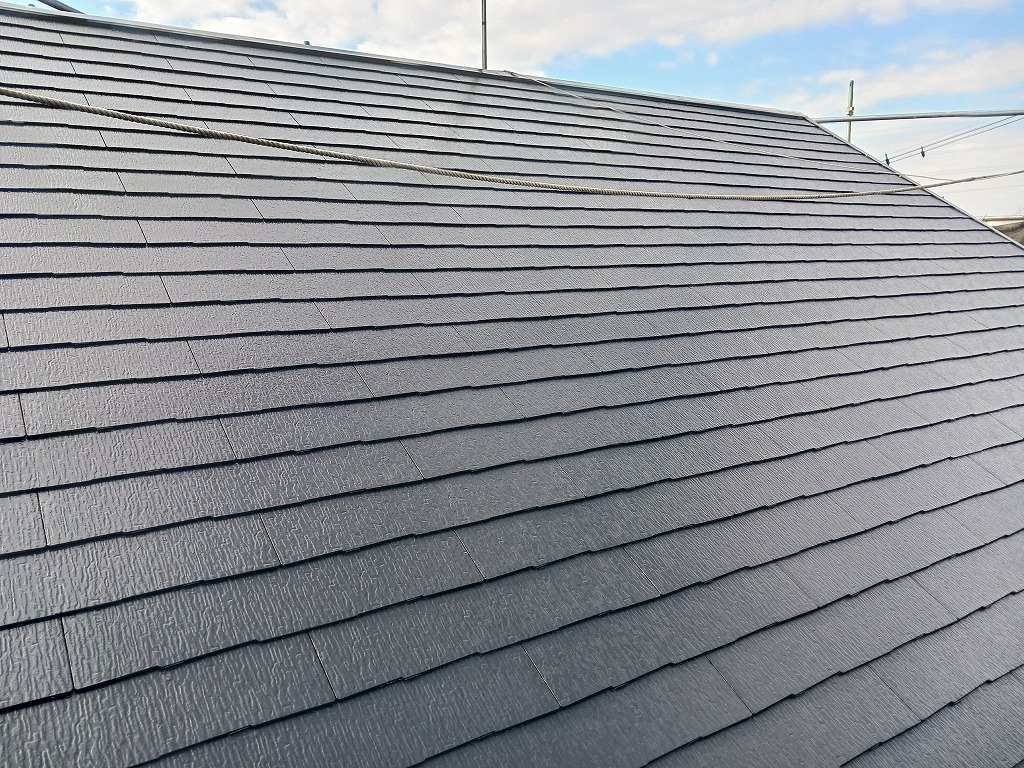 あんなに傷みがあった屋根も、塗り替えをすることで、立派でおしゃれな印象になりました!つやつやです。