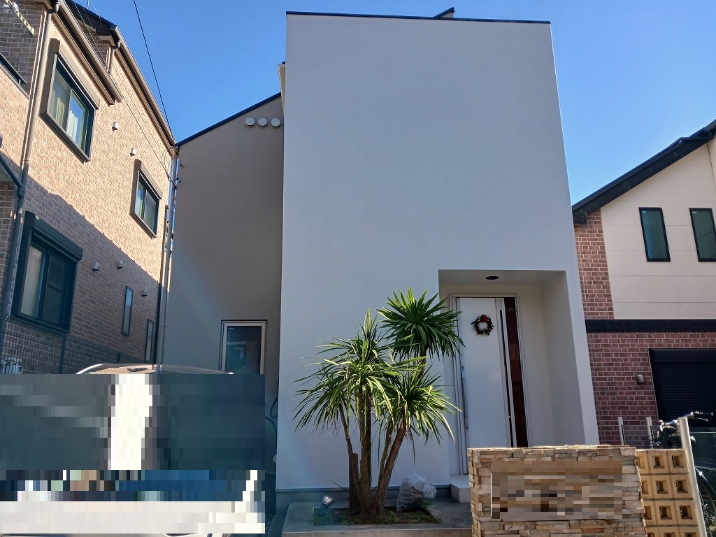 モルタル壁をホワイトと淡いベージュのツートンで外壁塗装!艶を押さえた3分艶!