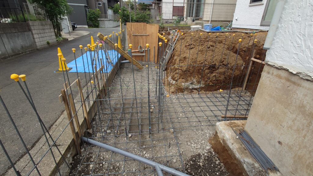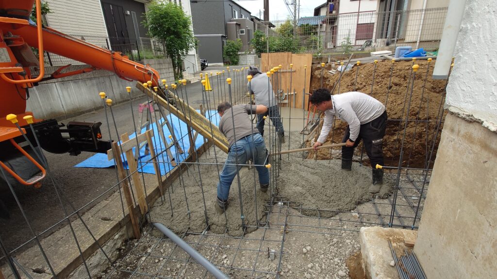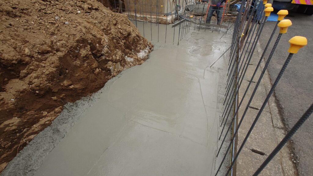 基礎がほぼ打ち終わりました。その後コンクリートが固まるまで乾燥(養生期間)期間が3~4日かかります。