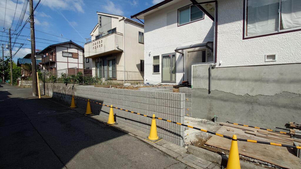 擁壁ブロックが積み終わりました。リブ付きのものでとてもおしゃれですね!